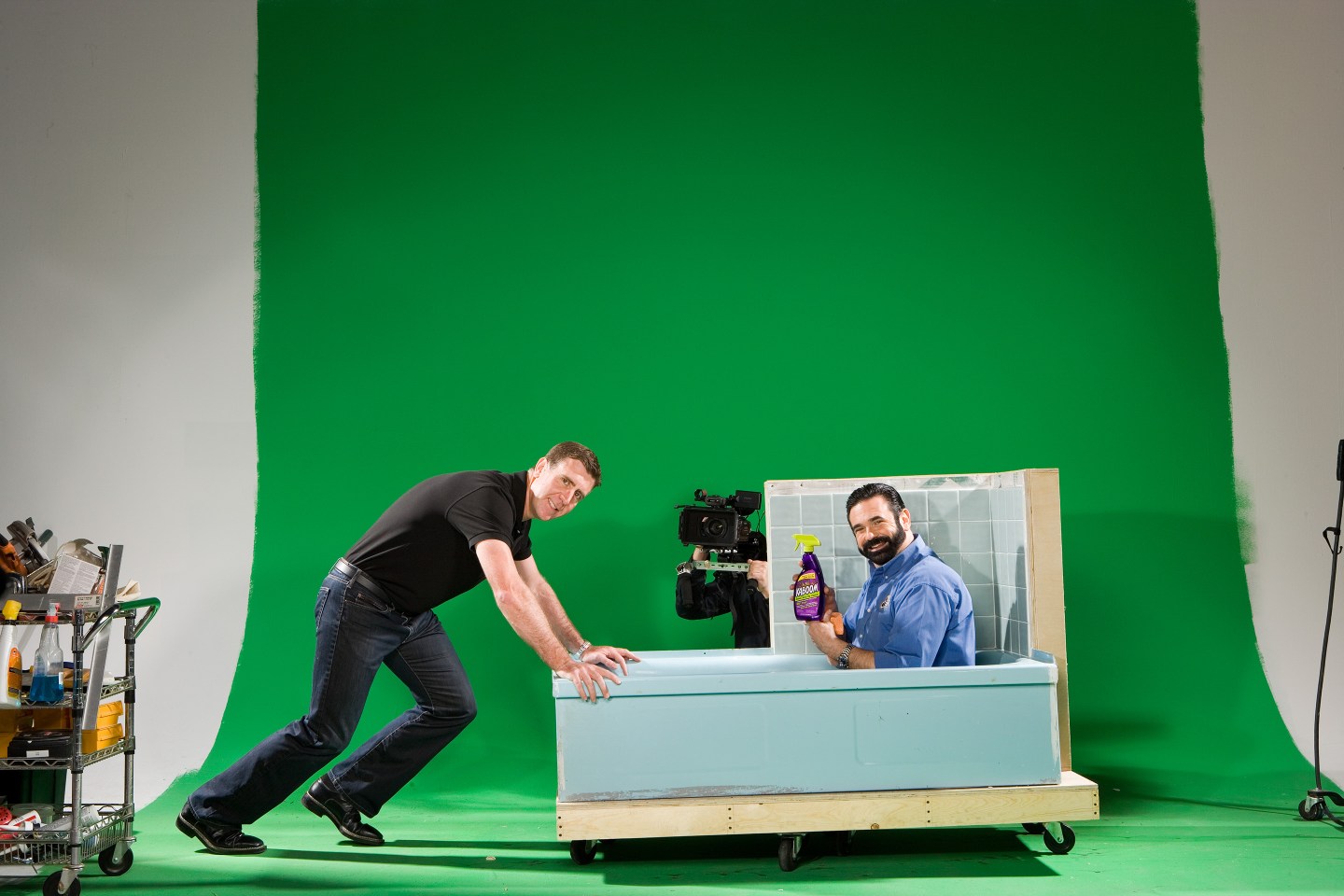 Over the next two days Mays will prove that statement correct. Inside a rented studio in a nondescript office park he will record endless voice-over variations of the Kaboom pitch—”You don’t need a cabinet full of cleaners!”—and apologize to the room whenever he flubs a line. He’ll take the clients to dinner when he should be home packing up his 7,500-square-foot home in Tampa in preparation for the move to a new, bigger house in Greenville, S.C., near his second wife’s family. And again and again on the fake bathroom set he’ll wipe the “path of clean” through soap scum prepared by the stain stylist, and look up at the camera with a plastered-on grin until he gets it just right.