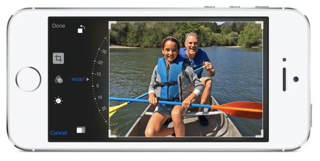 — Photo editing. Crop, straighten, rotate, adjust light and color in the app. See iClarified.