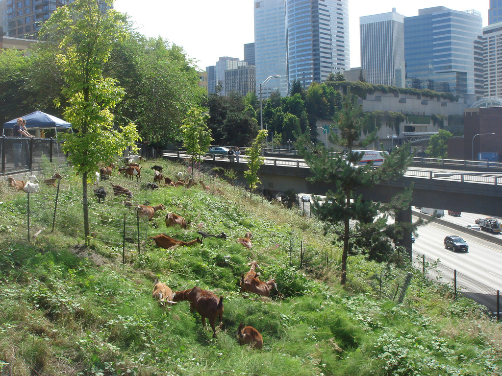 Seattle law limits each household to three small animals, and goats qualify. So you can have up to three, as long as you don’t have a cat or dog, which also count as small animals. But only dehorned, pygmy goats are allowed, and males must be neutered.