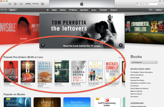 A few hours after the deal was made public, a reporter with good connections with Apple PR posted a screen shot of Hachette titles being discounted on Apple’s iTunes bookstore. “Apple is happy,” Peter Kafka wrote on Re/Code, in a widely retweeted headline, “to sell you the Hachette books Amazon won’t stock.”