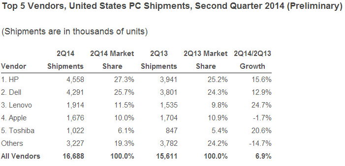 Gartner and IDC don’t always agree, but on this they are united: Apple was overtaken in U.S. PC sales in the second quarter of 2014 by Lenovo.