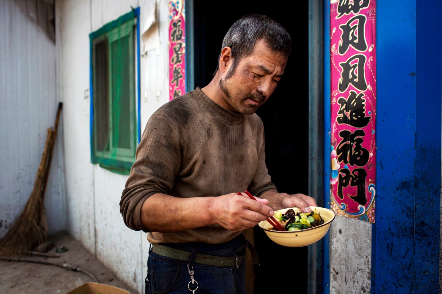 Liang Sheng Cai, who spent “four or five decades” working deep under ground, now has three sons and one daughter who work for the mining company. He lives in the “Harmony Village,” a cluster of mustard-colored apartments just outside the mine gates; like many Chinese mines, Qing Ci Yao is a self-contained community, with schools, housing, and shopping all within walking distance. He has never been to Beijing. Liang’s life has been contained within this small world.