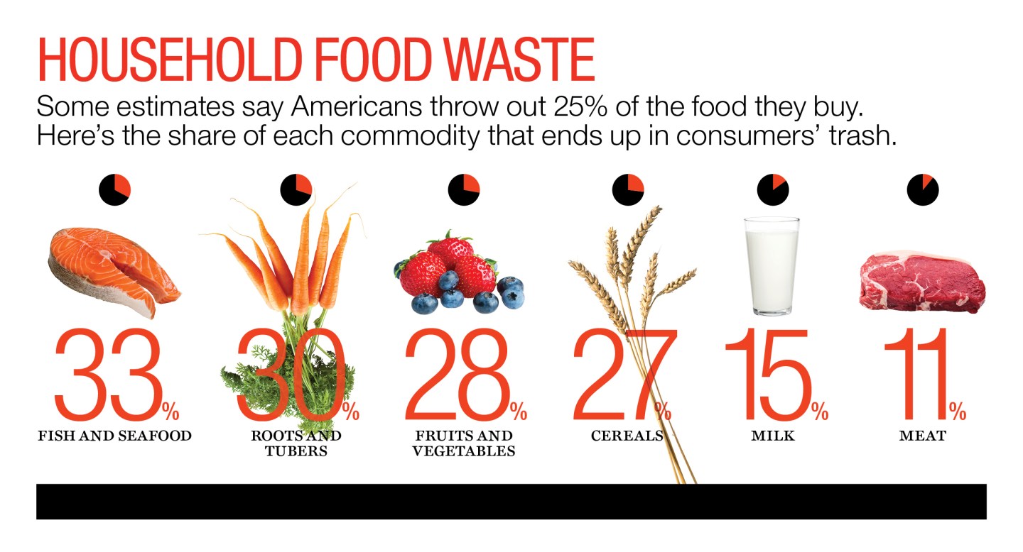 According to the latest data from the U.S. Department of Agriculture, about a third of the food available to consumers—or 133 billion pounds annually—goes uneaten. That’s $162 billion worth, more than General Motors’(GM) sales for all of 2013. And that figure doesn’t even take into consideration the cost of the water, energy, and land used to produce food that never touches our lips.