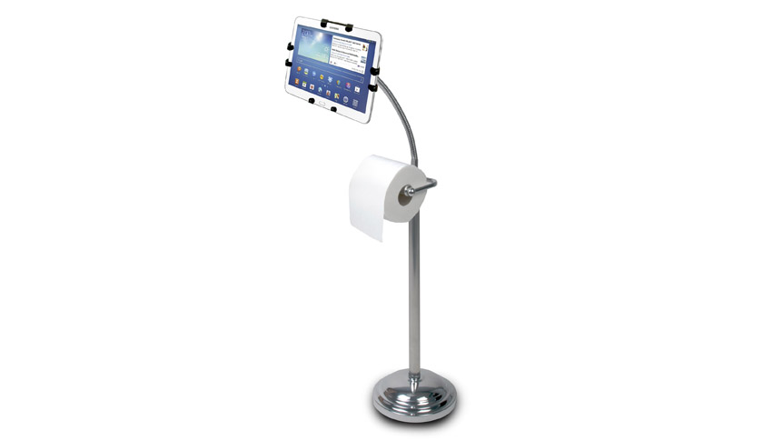 For these nonconformists, there is the CAT Digital iPad Holder. The angle at which your tablet is displayed is fully adjustable, and it even comes with its own toilet paper dispenser.