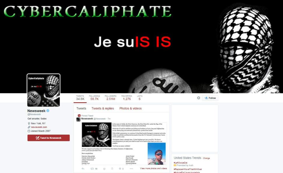 Newsweek said its Twitter account, @Newsweek, was hacked by a group calling themselves the “Cyber Caliphate.” The group claimed to be affiliated with the Islamic State (ISIS) and has previously hacked @Centcom, the Twitter (TWTR) account of the United States Central Command, as well as the official Twitter account of Taylor Swift, the Newsweek report said.