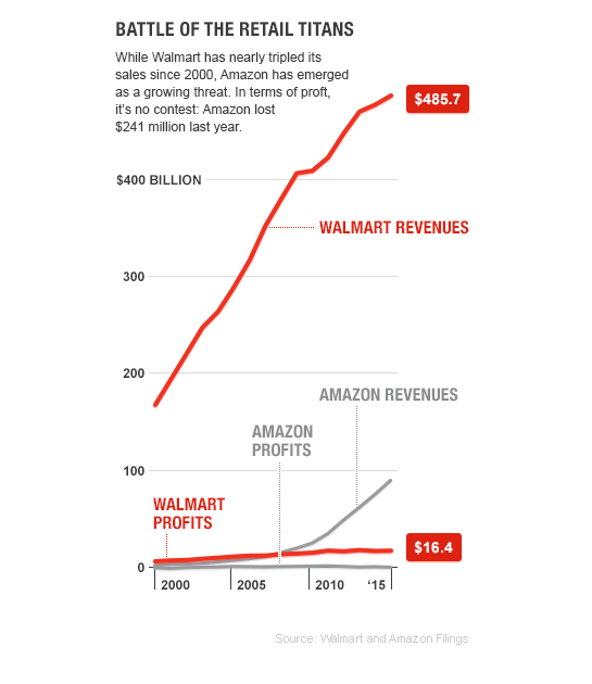 - Go “Walmart-size” on e-commerce: Build one of the world’s biggest private clouds. (Check.) Now, compete with Amazon on its own turf. (In progress.)
