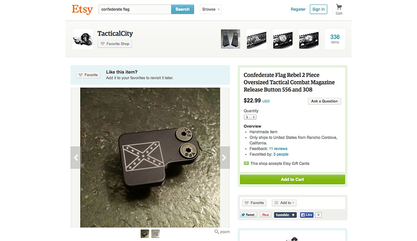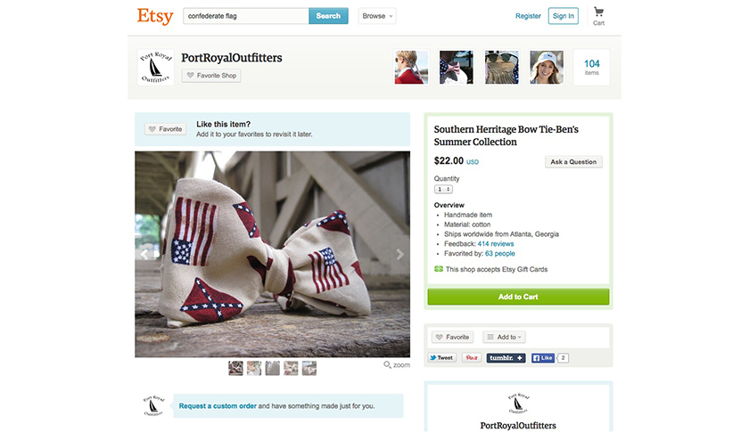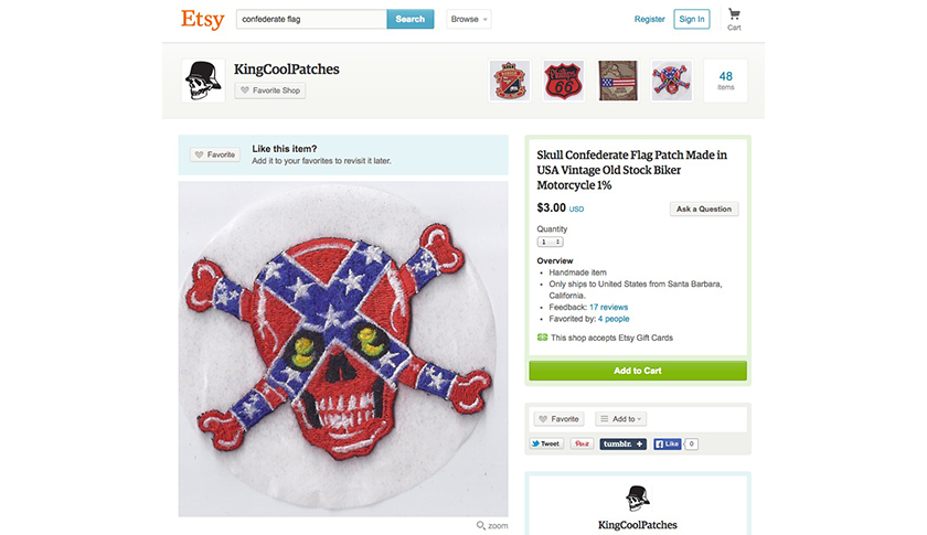 But, like other retailers in the wake of last week’s nine shooting deaths in a historic black church in Charleston, South Carolina, Etsy (ETSY) said on Tuesday that it would pull all of the Confederate flag merchandise on its website. Amazon and eBay also said on Tuesday that they would remove any merchandise that had the Confederate flag on it. That follows a number of large retailers, including Walmart, that have also removed the flags and items with images of the flags from their shelves.