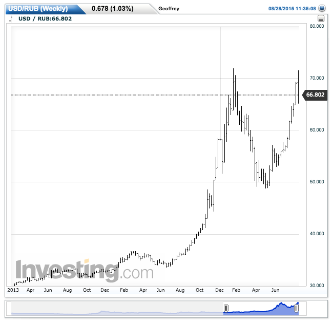 Russia’s food industry has been one of few sectors to increase production this year as the government has bet heavily on a program of ‘import substitution’, but it hasn’t managed to fill the gaps in food supply left by the sanctions. Food prices rose 20% in the year to July, according to official data, and the price of goods imported from non-sanctioned countries looks set to rise again after the ruble’s slide on the foreign exchange markets in recent weeks.