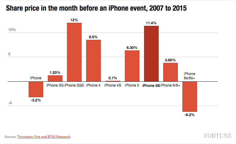 - Since that historic day, Apple’s stock has dropped on 6 out of the next 7 iPhone announcement days.