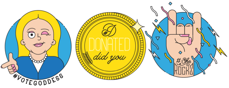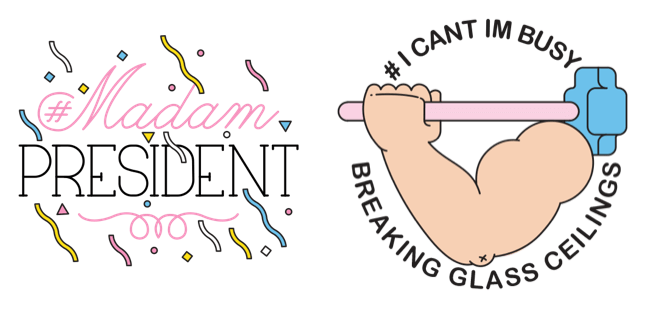 Users can also show their support of Clinton with hashtag stickers, such as #MadamPresident and #ICan’tI’mBusyBreakingGlassCeilings.
