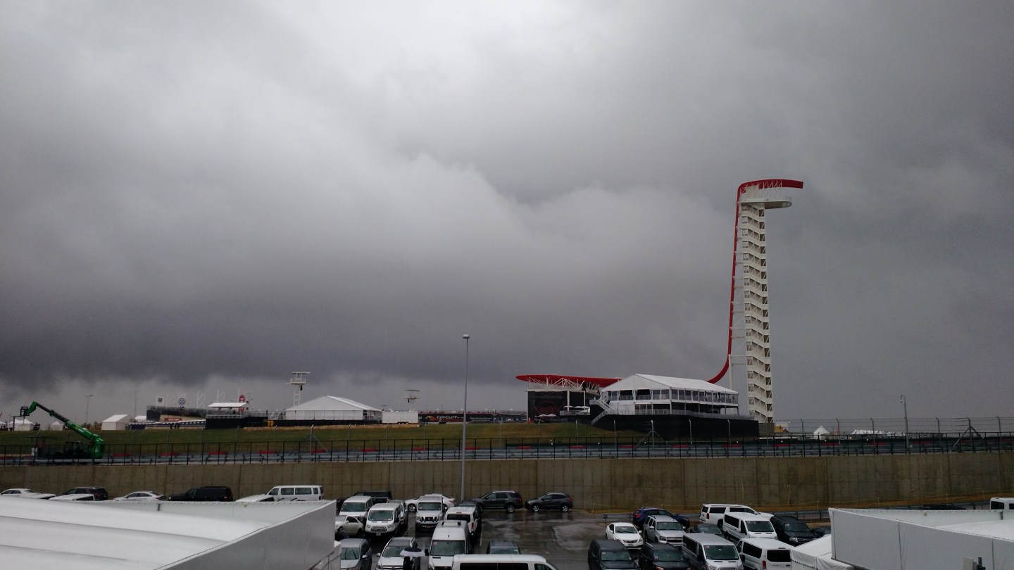 It’s cold and wet for Sunday’s Formula 1 race at Austin, Texas, where the rainfall left over from Hurricane Patricia has led to more than 6 inches of water being dumped on the track. In a sport where rain is seen as the great equalizer where the traditional leaders can end up at the back of the pack for the start of the race, and have to fight their way up to the front, that didn’t happen as the Mercedes team’s two drivers locked in the top spot Sunday morning after a brief qualifying round.