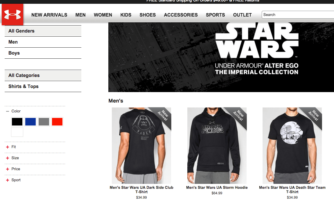 An Under Armour spokesperson shared the following statement with Fortune: “Through our Alter Ego program, we continue to introduce key collections around iconic movies, music artists and superheroes. As part of our Star Wars collection, we will continue to introduce new styles across men’s, women’s and kids in the coming weeks.”