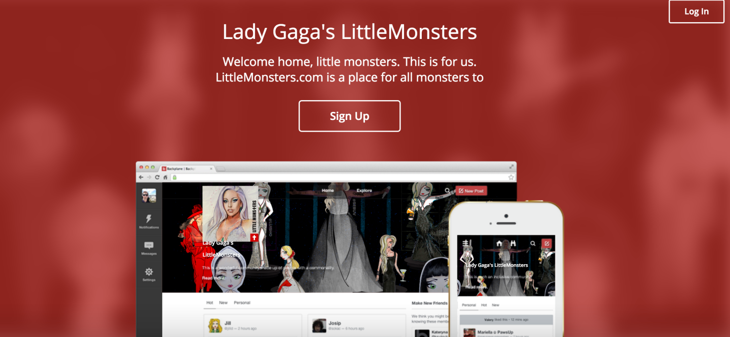 Backplane launched a single product, LittleMonsters.com, which was born out of Lady Gaga’s fan website. The monsters site was billed as a high-end social media and photo sharing network: