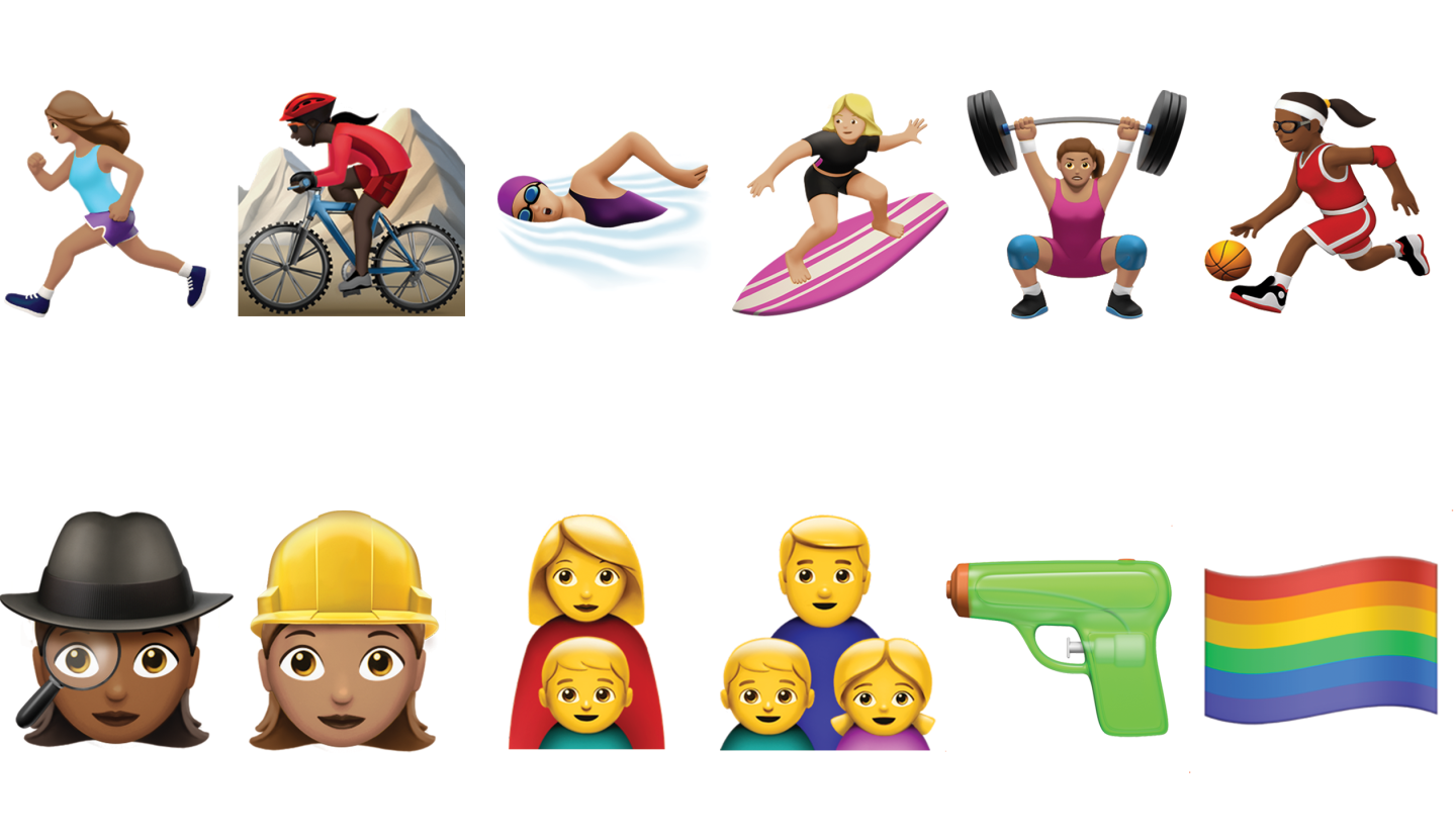 The update will include women and people of color surfing, lifting weights, biking and working as police officers, construction workers, doctors and more. In all, it will include more than 100 new emoji, according to Buzzfeed.