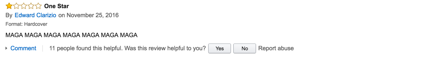 When asked for comment on the politically-motivated reviews and if Amazon has a policy for policing them, a company spokeswoman told Fortune that reviews “must be product reviews …designed to help customers make purchase decisions.” She noted that “there are many other forums available across the Internet to discuss topics of interest which are not product reviews.”