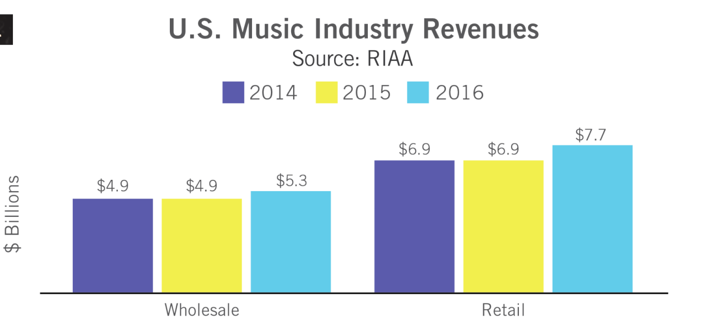 In 2016, the record industry had its best year in nearly two decades, the Record Industry Association of America said on Thursday. Total U.S. retail sales from recorded music rose 11.4% last year, to $7.7 billion, the biggest gain since 1998.