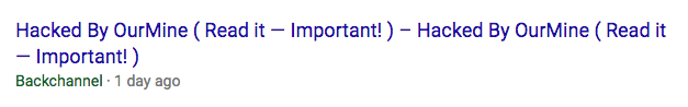 “Hacked By OurMine ( Read – Important! ) – Hacked By OurMine ( Read – Important! ),” the group posted on Backchannel. A screenshot of the text captured in Google’s search engine cache following the takeover can be seen below.