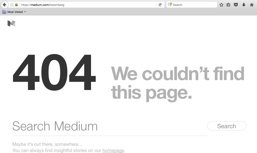 Fortune believes the hackers also targeted Bloomberg Tech’s Medium page. Like Fortune’s and Backchannel’s pages, Bloomberg’s homepage displayed a “404” error message shortly after the takeovers came to light. A Bloomberg spokesperson declined to comment.