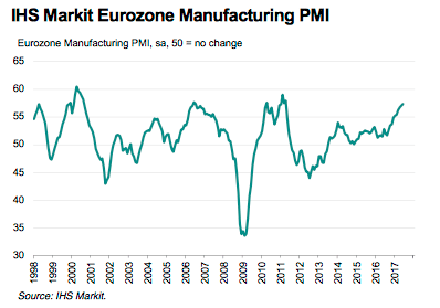 Factories in the Eurozone rounded off the first half of 2017 by ramping up at the fastest rate for over six years, according to closely-watched Purchasing Manager Indexes released Monday by the research firm IHS Markit. Meanwhile, Asia’s tech-manufacturing economies were helped by growing global demand for electronics products, it said.