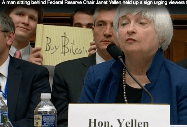 His comments can be seen as a rebuke to some crypto-currency enthusiasts, who are skeptical of central banks and who recently photo-bombed the current Federal Reserve chair, Janet Yellen, with a “buy bitcoin” sign: