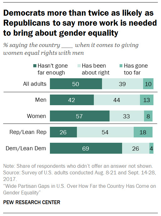 These results—compared to those for Democrats—point to a dramatic partisan divide in the U.S on the topic of gender equality.