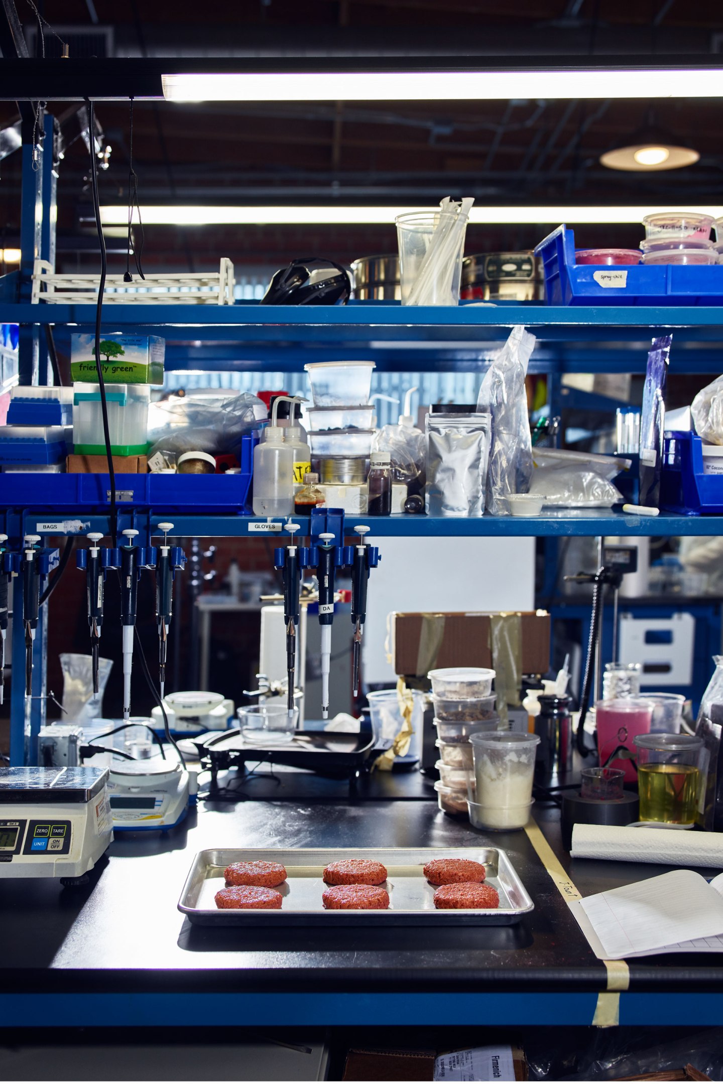 Davis says the best description of the company’s first successful meat analog was rancid polenta. “It was still terrible,” he says. “And yet it was so much better than anything we’d made to that point.” The rule of the lab, explains Davis, is that, “it’s very bad manners to poison your friends, but you’re allowed to make it taste bad.”
