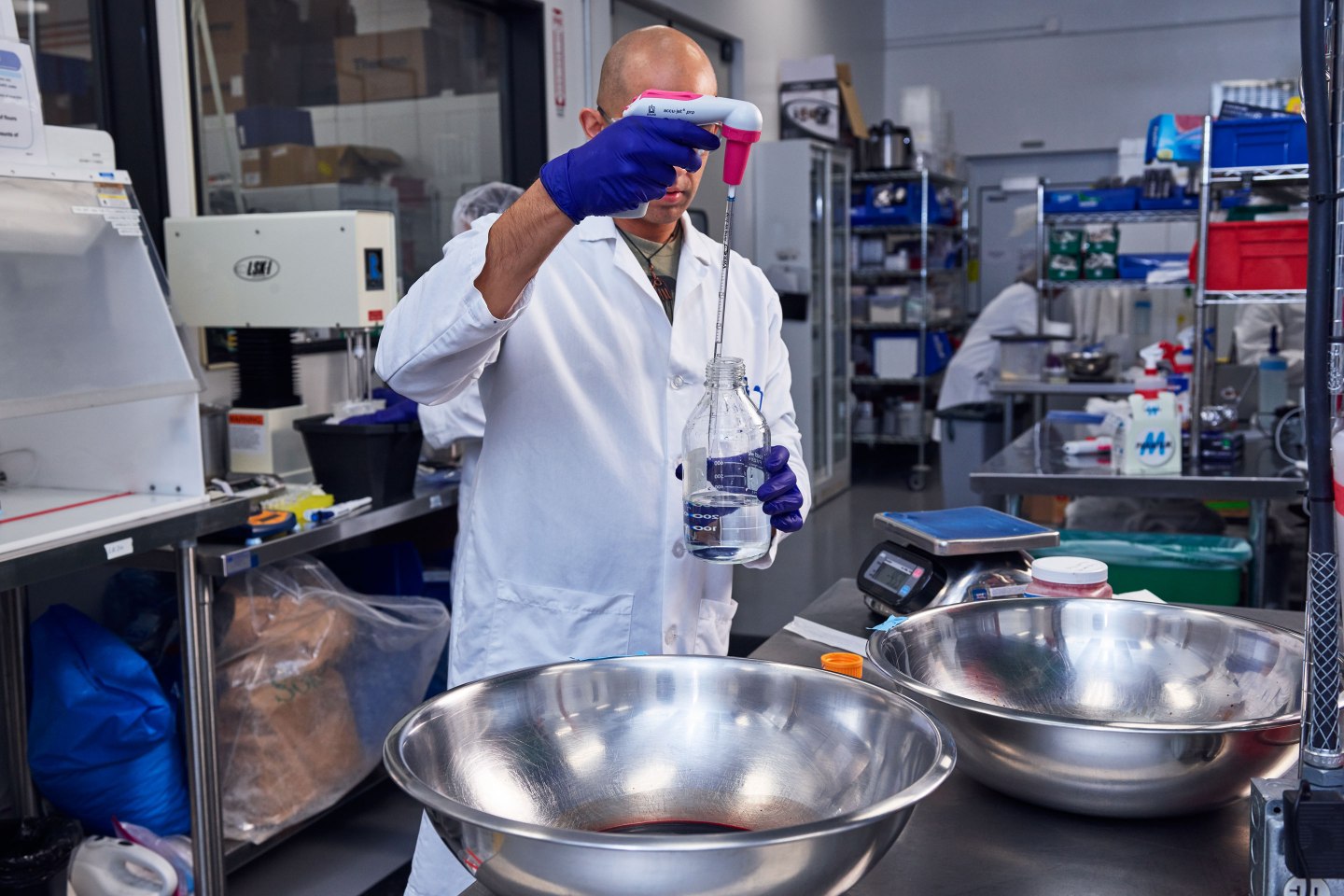 Beyond Meat’s research takes place at a lab dubbed the Manhattan Beach Project, down the street from its headquarters in El Segundo, Calif. “I wanted people to understand the global significance,” says CEO Ethan Brown. “We have the brightest scientists and we’re going to fund them at a level that this work deserves,” he adds. “This is a global problem, not a culinary choice.”