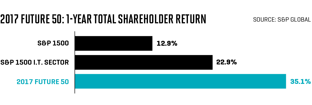 Vitality operates over long periods and may not be reflected in short-term performance. That said, early results are encouraging: Since their selection last October, the 2017 Future 50 have achieved average revenue growth of 18% and total shareholder returns of 35%—outperforming both the overall market and growth-focused stock indexes.