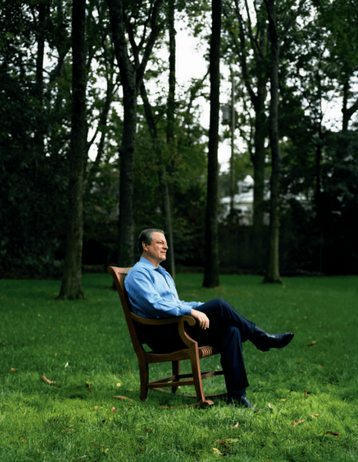 Now Gore, Doerr, and Blood are gathered on the back patio of Gore’s $2.3 million, 10,000-square-foot home in the Belle Meade section of Nashville. That’s the mansion—to Gore’s critics it’s always a mansion—that tagged the former Vice President as an energy hog. He’s quick to point out that the house generates electricity from more than 30 solar photovoltaic panels on the roof as well as seven 300-foot geothermal wells in the ground, and that it has been certified as an energy-efficient home by the U.S. Green Building Council.