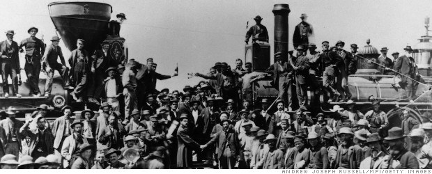 Connecting East with West via locomotive, a symbol of American ambition and accomplishment.