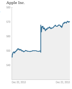 Ben Reitzes, Barclays: China Mobile Deal Arrives, Focus Now on Margins and Buyback. “We believe this announcement is a relief given concerns after the absence of Apple at China Mobile’s Global Partnership Conference last week. We believe Apple is one of the few companies in our coverage that has the potential to grow within China in 2014.” Overweight. $585.