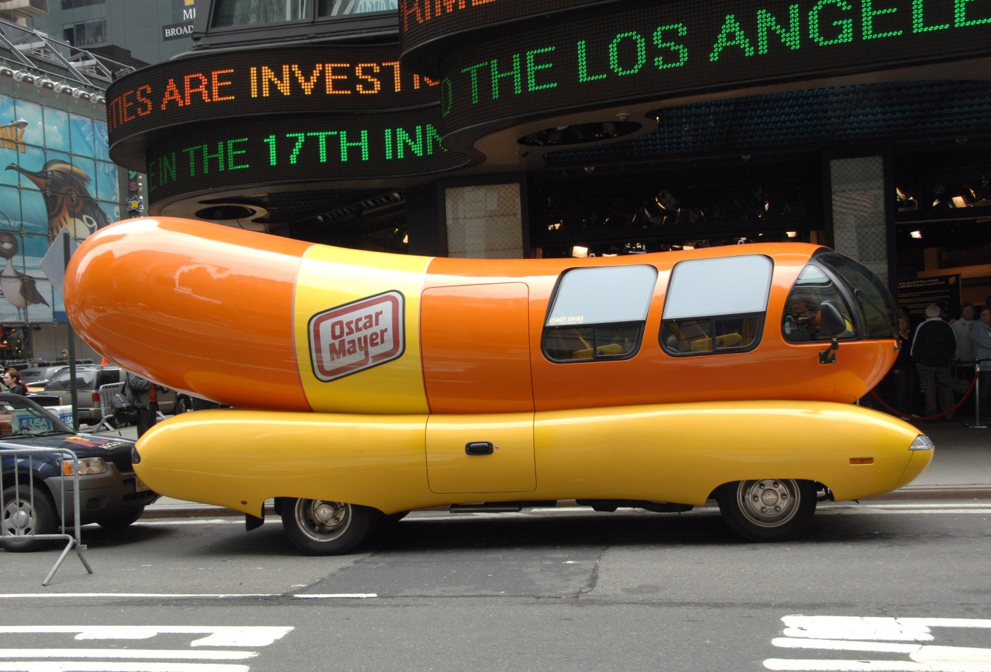 The hotdog-shaped vehicle may be one of the most popular brandmobiles to date, and that’s partly because it’s been around for nearly 80 years. First built in the 1930s, the large weiner-shaped car has been entrancing the masses to buy Oscar Mayer's meats ever since. The food company lauds the Weinermobile on its website, with a blog focused solely on the traveling hotdog’s daily escapades. Titled the “Hotdogger Blog,” it’s all about, you guessed it, “Life Inside the Wienermobile.”