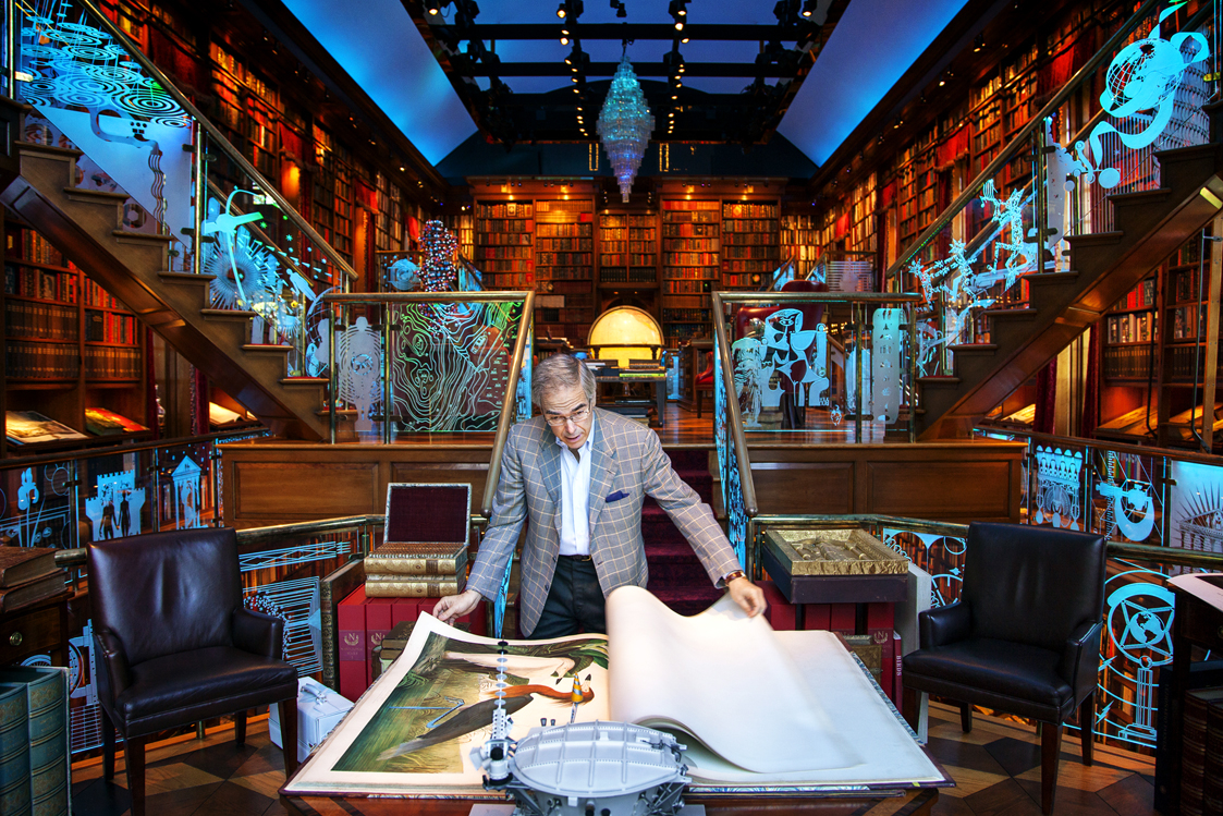 Replete with hidden passageways and mysterious iconography, the room looks as if it belongs on screen next to Harry Potter or Indiana Jones. Its ancient books and relics could have been lifted from the Smithsonian—or the long lost Library of Alexandria. But this sprawling collection is in a private home in Ridgefield, Conn., an hour outside Manhattan, set back from a forested winding road. Walk into a side entrance in what seems a typical exurban manse, past a pile of still-unopened Amazon packages, and you are thrust into a bibliographic time warp—a strange archive with three-story-high bookshelves and hanging artifacts like an original backup to Sputnik. It all belongs to Jay Walker, the founder of Priceline and a serial entrepreneur and inventor.