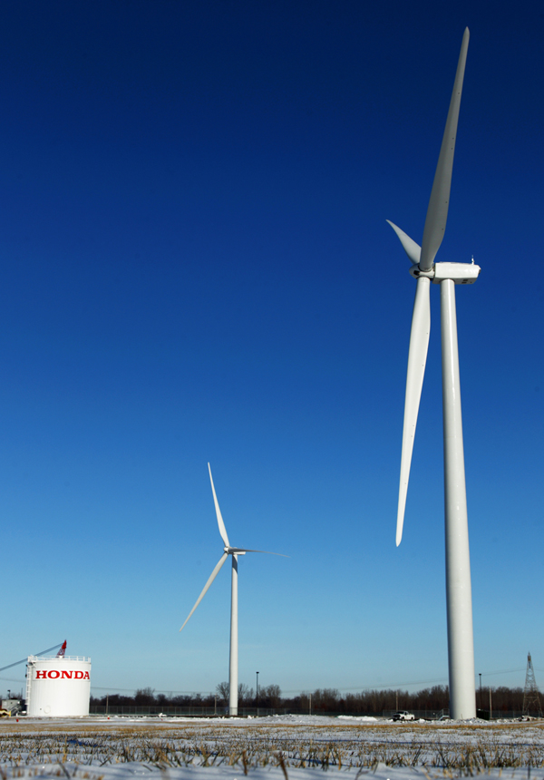 The benefits of alternative energy are not evenly distributed across all manufacturing locations, of course. Honda’s Ohio complex, for example, is within the service area of Buckeye Power, a rural electricity co-op that has been untouched by utility deregulation and still gets the bulk of its power from coal. Honda had to reach a power purchase agreement with Buckeye in order to erect the Russells Point turbines. But now every megawatt that Honda generates from wind is one that doesn’t derive from coal.