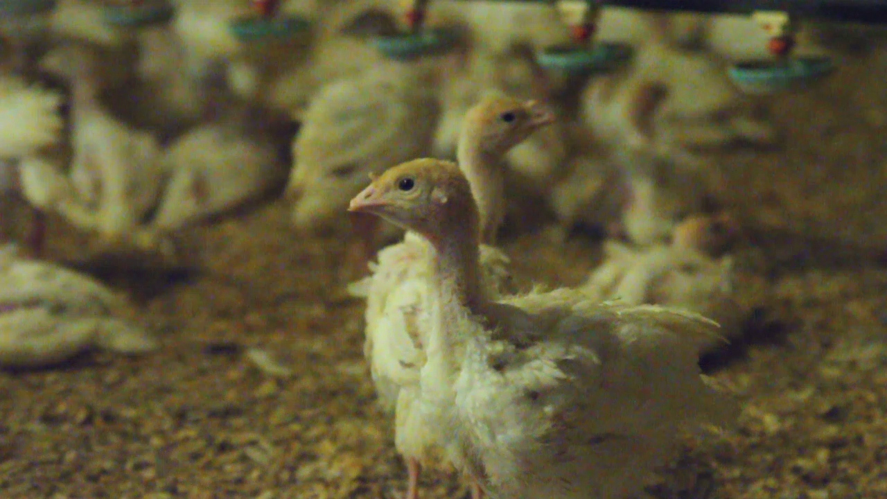 These turkeys hatched about 28 days after being laid as eggs. Empire’s contracted farms receive the baby birds when they are just one day old. After they age a few weeks, the farmer will move the birds from this facility to a bigger one for several more weeks before they’re carted off to Empire’s processing plant.