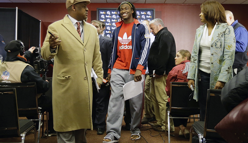 In 2010, Nike made news by usurping Reebok (which is owned by Adidas Group) as the official apparel provider of the NFL. In a deal that reportedly cost $1.1 billion (making it one of the league's three most expensive sponsorships), Nike (NKE) is the sole provider of on-field uniforms and apparel for players and staff. (There is one exception: Adidas-endorsed players are permitted to wear Adidas cleats and gloves, thanks to a new deal.) Under Armour, meanwhile, is the exclusive apparel provider for the NFL Combine. In 2012, quarterback Robert Griffin III (better known as RGIII) got the $10,000 fine for wearing an Adidas sweatsuit—bearing a big, old-school Adidas trefoil logo on his shirt—to a postgame press conference. Look for an interesting bidding war to develop soon when Nike's five-year deal expires.