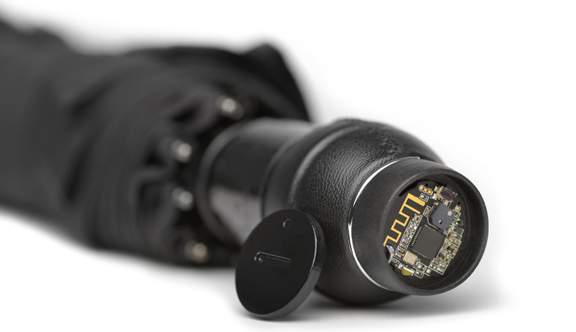 The so-called Davek Alert is an umbrella with Bluetooth technology embedded in the handle, powered by a replaceable watch battery. Users sync the umbrella to their smartphone. Then, if the distance between the two exceeds 30 feet, the phone blasts a reminder to grab the umbrella, according to the proposed project’s Kickstarter page.