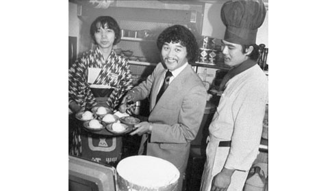 Rare is the photo of Aoki above the teppan table. According to his authorized biography, he could prepare only French toast. At Benihana, Aoki hired single, highly trained Japanese chefs. His employees had to complete a three-year apprenticeship program in Japan, as well as a special six-week course in English, American manners and Benihana showmanship to make the cut.