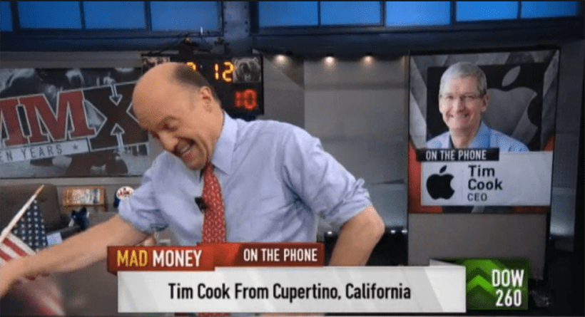 Mad Money‘s Jim Cramer says he didn’t know when he took an on-air call from “Tim in California” that the caller was Apple CEO Tim Cook — and we must take him at his word.