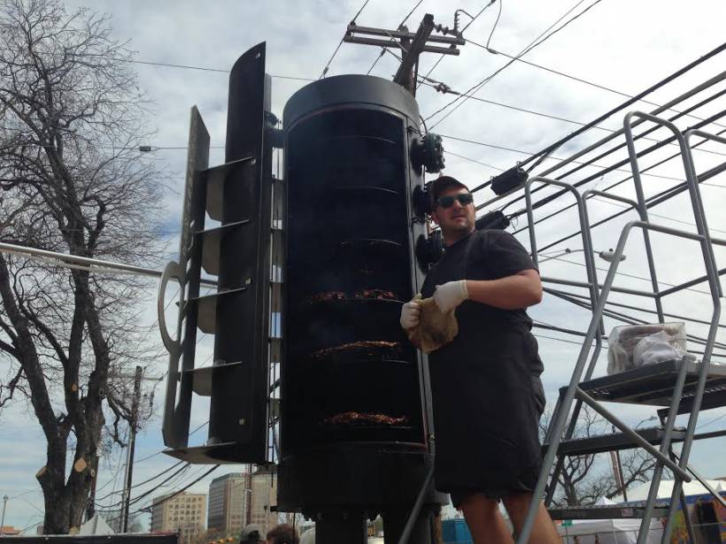 General Electric (GE) has parked quite a contraption outside of the Austin Convention Center. It’s not a new kind of wind turbine or aircraft engine. Rather it’s a 12-foot tall smoker, and every day of SXSW Interactive it’s been pumping out 230 lbs. of barbequed brisket, ribs, sausage, beets and tofu.