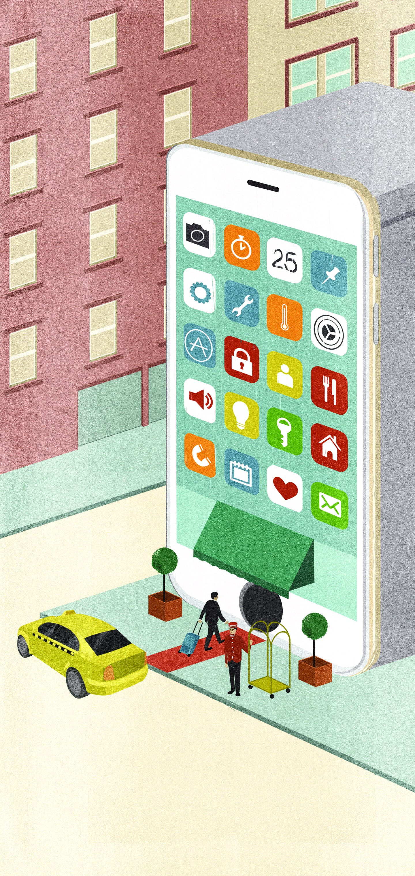 As human beings become switching stations for the digital signals coming in and out of our phones, the technological backwardness of so many hotels has become, for me, part of their charm. I take comfort in the fact that hotel rooms often double as museums of Jurassic technologies—the desktop landline that acts as a five-pound free weight, the dedicated button you must push to order room service, the DVD player for which you can rent actual DVDs. Still, the fear that the hotel experience I am dependent on might dissolve into the surrounding digital babble of Big Data and wearable gizmos and giant LCD screens doesn’t seem entirely unreasonable.