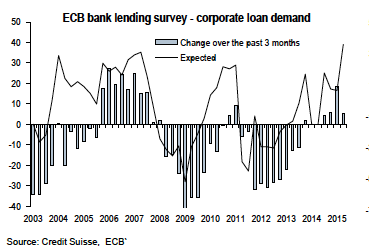 In Europe, meanwhile, the ECB’s latest quarterly survey of the banking sector showed a big rise in the balance of banks who expect demand for credit from both companies and households to rise this spring. Although the ECB has been busy opening the spigots for the last few months, there had been little sign of either businesses or households actually wanting to borrow because they didn’t have enough confidence, either in their own outlook or the outlook for their economy in general.