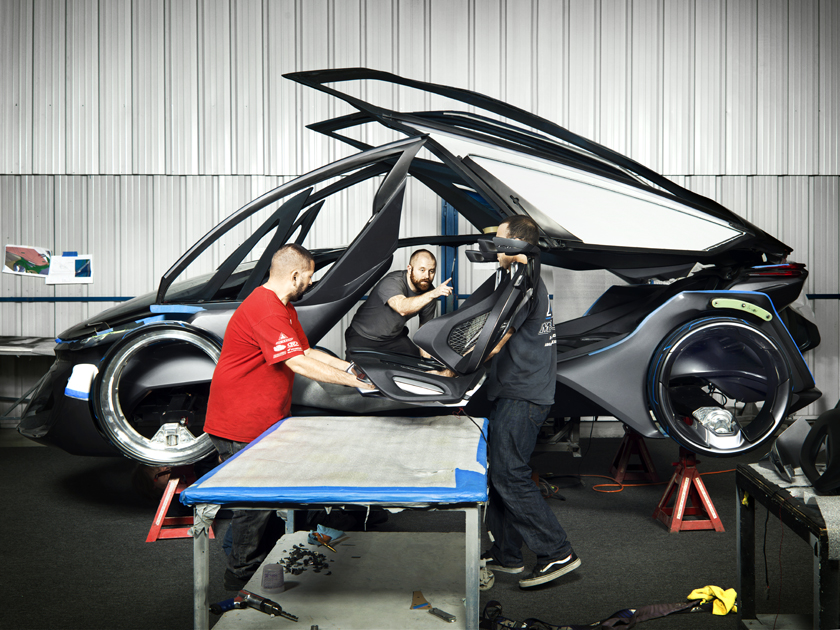 Tucked away in a nondescript commercial building in Fountain Valley, Calif., dozens of designers, engineers, and craftsmen have toiled secretively for months on a project that offers a glimpse of the way we may be driving 15 years from now. Their hangar-like workspace belongs to GFMI Metalcrafters, a company that for decades has built many of the most important concept cars to hit the auto show circuit. Laboring furiously in its password-protected workrooms, these teams have been assembling a car so far ahead of its time that some of the technologies and materials it requires don’t exist yet.