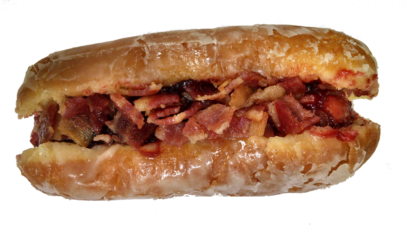 The minor league West Michigan Whitecaps’ Fifth Third Ballpark offers this pile of food, weighing in at more than four pounds. The $20 Fifth Third Burger has five one-third-pound burgers (making five thirds of a pound), a cup of chili, five slices of American cheese, salsa, nacho cheese, Fritos, lettuce, tomato, sour cream and jalapenos. Anyone who can consume this bomb of 4,800-plus calories and nearly 300 grams of fat in one shot wins a T-shirt. The ballpark also sells the Baco, a bacon-encased taco.
