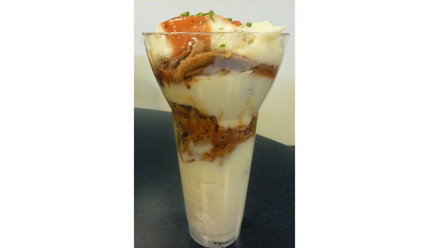 Last year, the Milwaukee Brewers’ Miller Park rolled out the Pulled Pork Parfait. This $7 creation consists of layers of mashed potatoes alternating with layers of pulled pork, and topped with gravy and chives. For $13, Miller Park also offers The Beast, a turducken-esque bratwurst stuffed with a hot dog, wrapped in bacon, topped with sauerkraut and onions, and served on a pretzel roll.