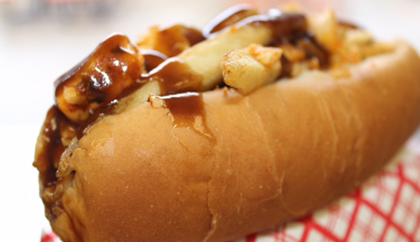 Last year, the MLB’s Detroit Tigers Comerica Park (the same park that brought baseball fans the half-bacon, half-beef 50/50 Burger), presented a new $7 offering that’s like a hot dog wearing disco fries, but done in the style of their Canadian neighbors. They also offered three other messy dog styles: one topped with bacon, egg and cheese, one with pork and beans, and one with Coney Island chili and cole slaw.