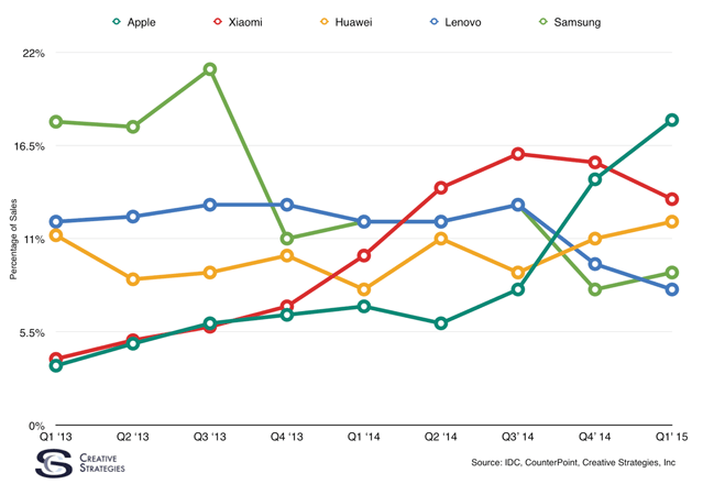 “Note that is the first time Apple led in China as the top smartphone vendor by sales,” he says. “It also won’t be the last.”