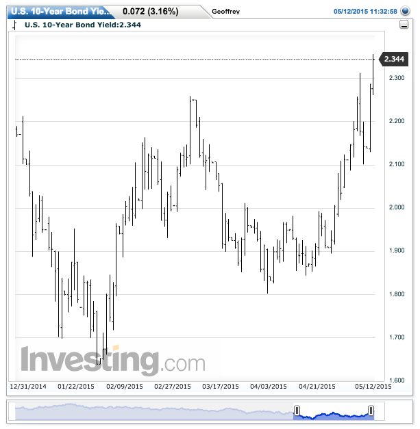 He’s not the only one to spot that trend. Bond prices have backed up sharply in recent weeks, and the 10-year Treasury note now yields 2.34%, a seven-month high and up from up from a low of 1.64% in January.
