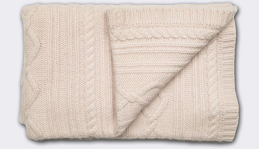 The Baby CZ by Carolina Zapf cable knit blanket is crafted from cashmere which was collected by hand from Kashmir goats of Mongolia.