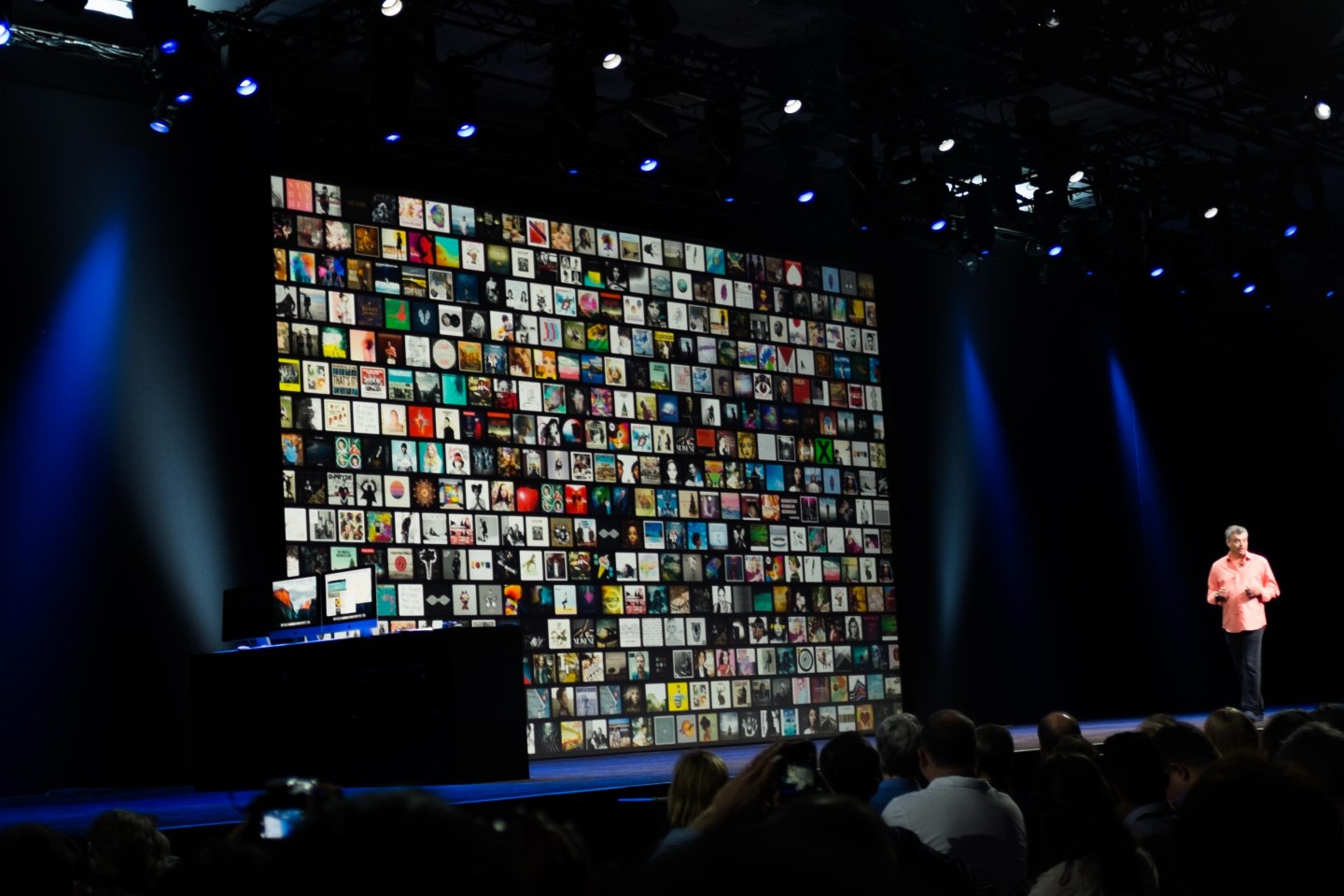Iovine is using the “What song comes next” line he used before. Attacks algorithms. Pushing the human touch. He’s energetic and passionate, but I’m not sure what he’s saying. Invites Eddy Cue to explain.